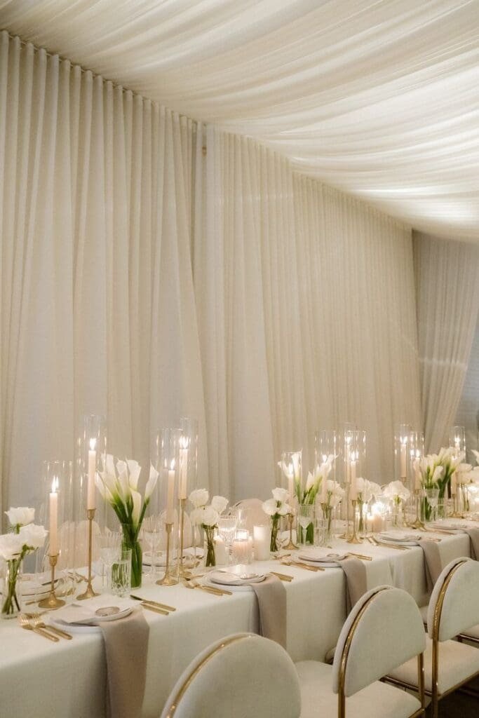 A minimalista esküvő nem hivalkodó – a fókusz a tisztaságon, a tág tereken és a szépen komponált részleteken van. A cél, hogy minden elemnek legyen helye, szerepe és jelentősége.