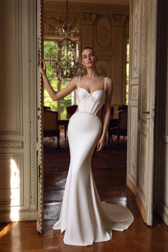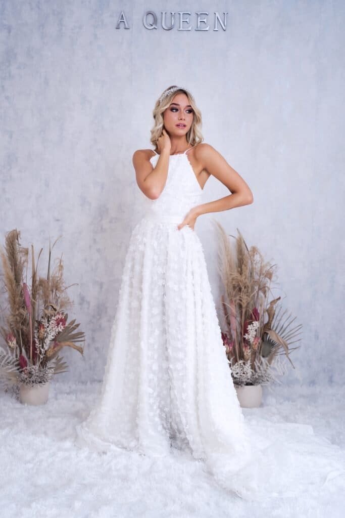 - Kisebb ceremóniákhoz vagy modern helyszínekhez: Minimalista ruhák kiemelik a dekor, a virágok és a kiegészítők részleteit, anélkül, hogy a ruha túlzottan dominálna.